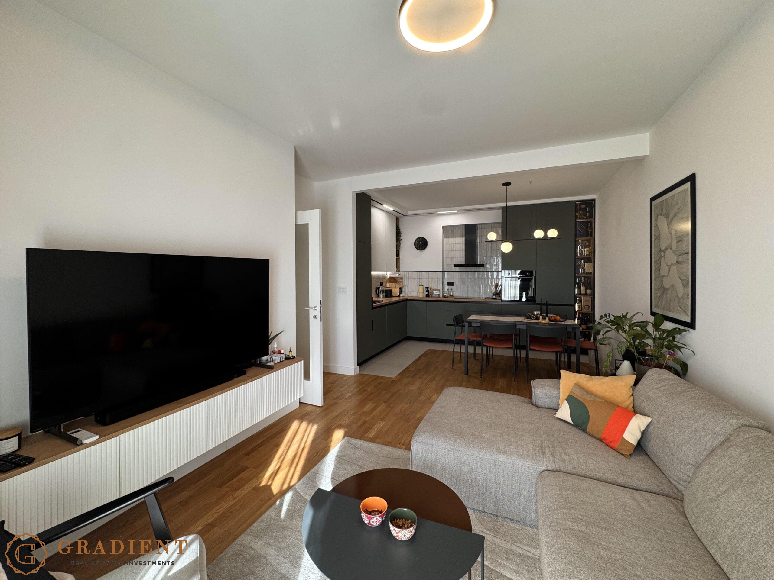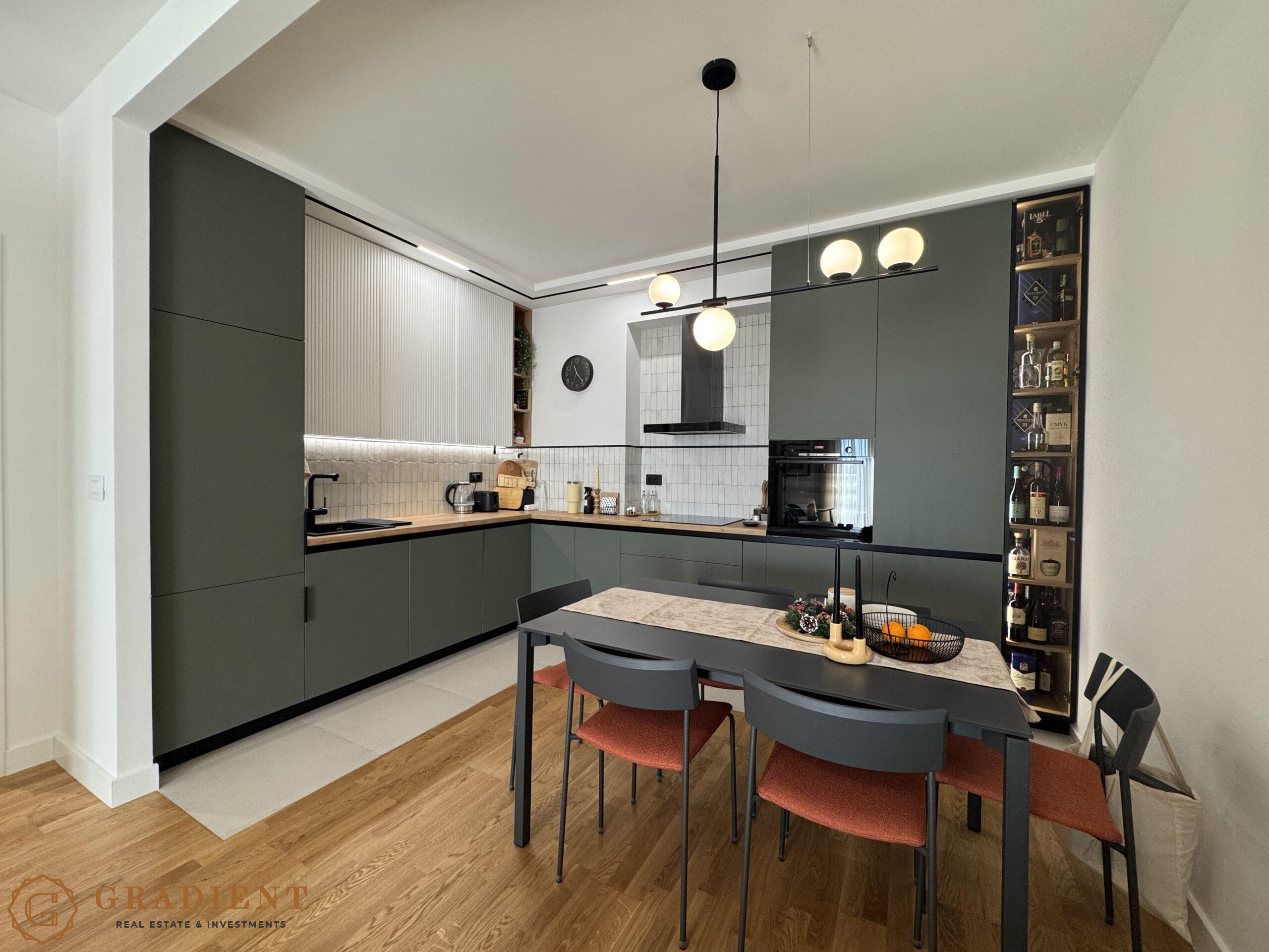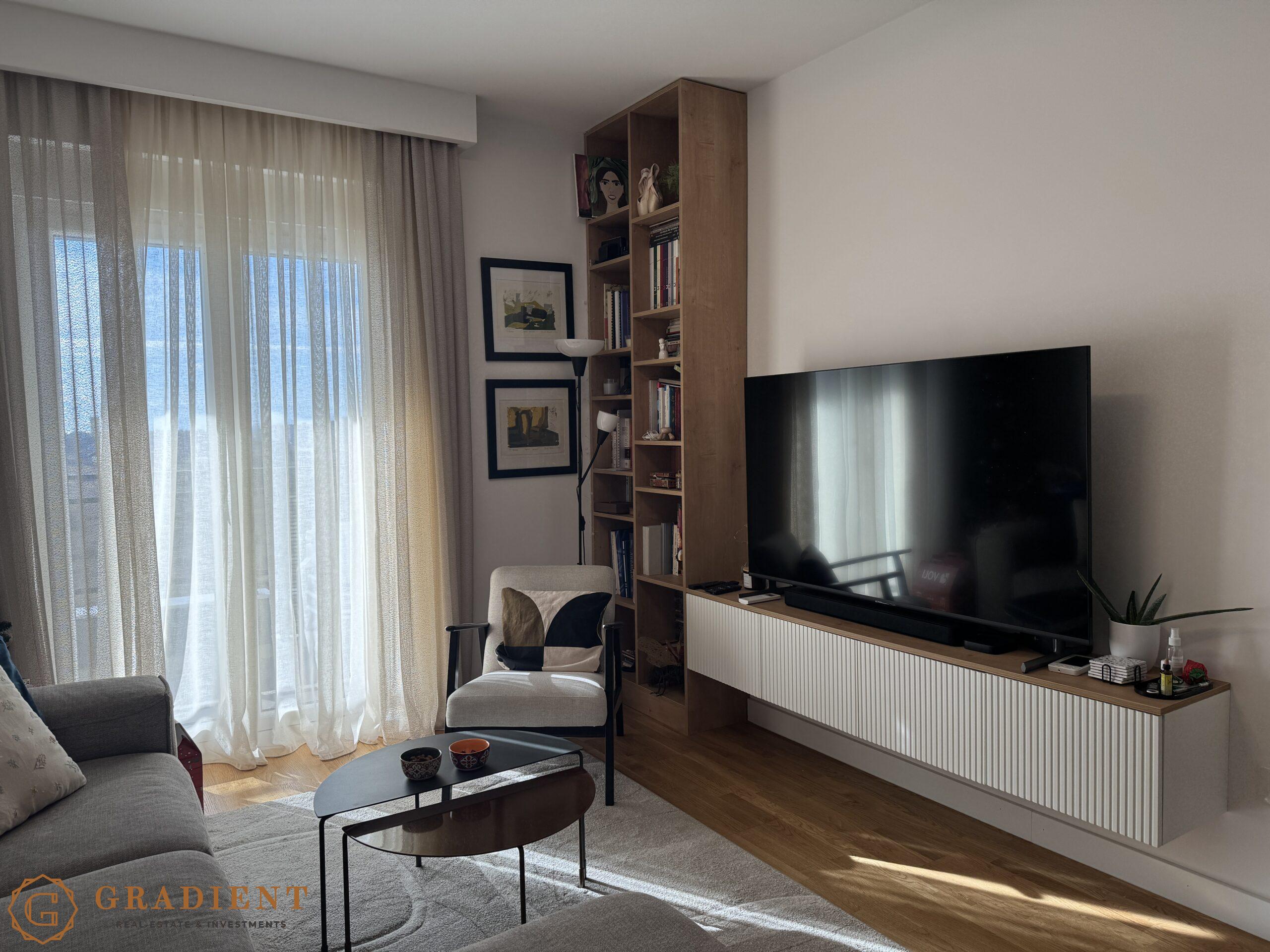 Stan se prodaje u potpunosti namješten, sa pažljivo biranim brendiranim namještajem i visokokvalitetnim tehničkim uređajima, što ga čini idealnim izborom za one koji traže useljenje, bez ikakvih dodatnih ulaganja. Enterijer je osmišljen sa posebnom pažnjom na detalje, dekorativne tapete, pažljivo uklopljeni elementi i savremeni dizajn stvaraju osjećaj topline, elegancije i funkcionalnosti.