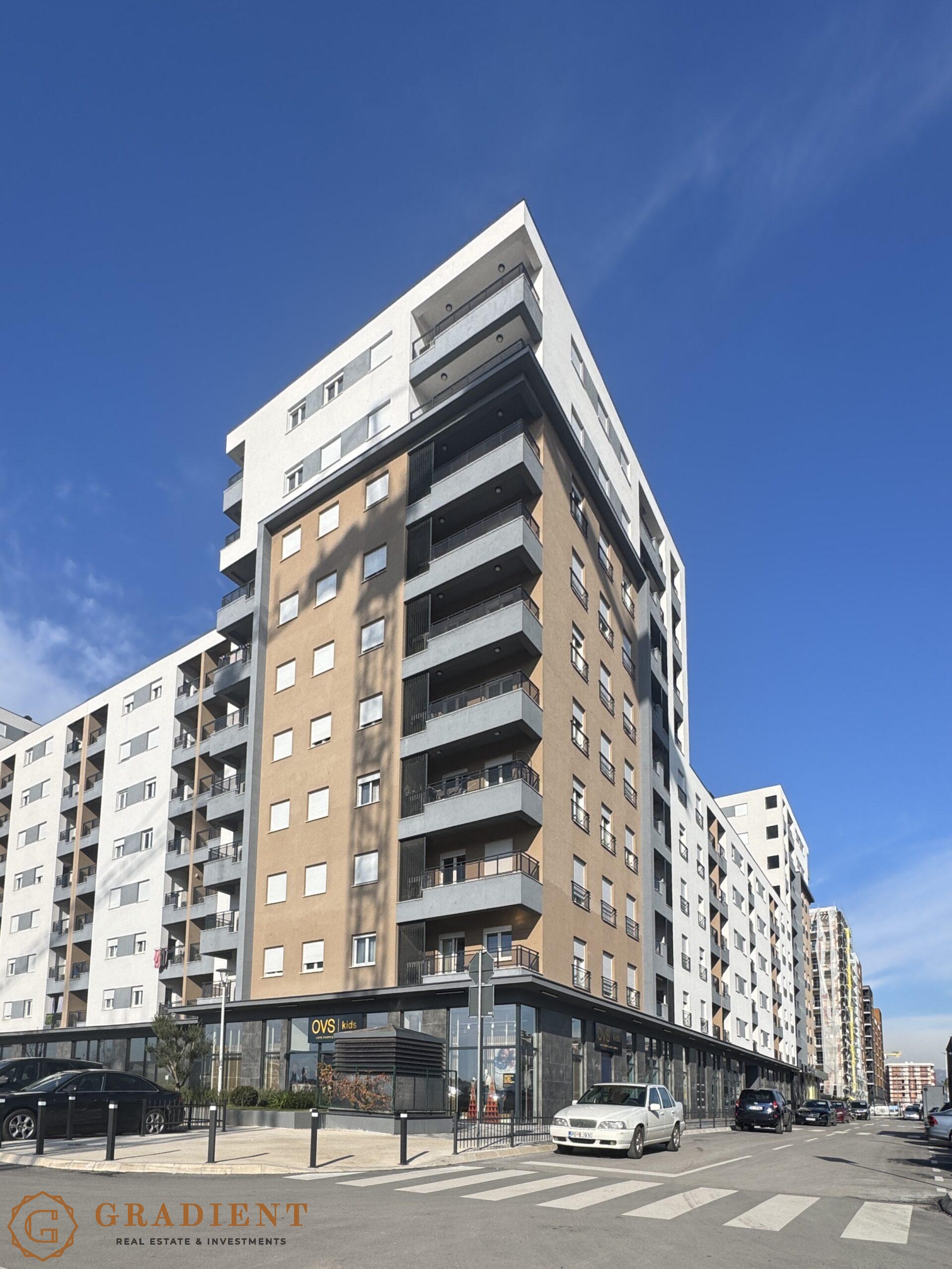 Na prodaju je kompletno opremljen, luksuzno uređen stan površine 69 m², smješten na petom spratu savremenog stambenog objekta Master 8-8, u atraktivnom dijelu Starog Aerodroma, Podogorica.